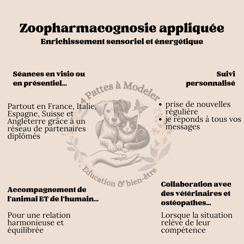 La Zoopharmacognosie appliquée ne se substitue en aucun cas à un soin vétérinaire. Elle n’a pas vocation à diagnostiquer, prescrire, administrer un soin ou traiter une quelconque pathologie. Cela relève de la compétence du vétérinaire.